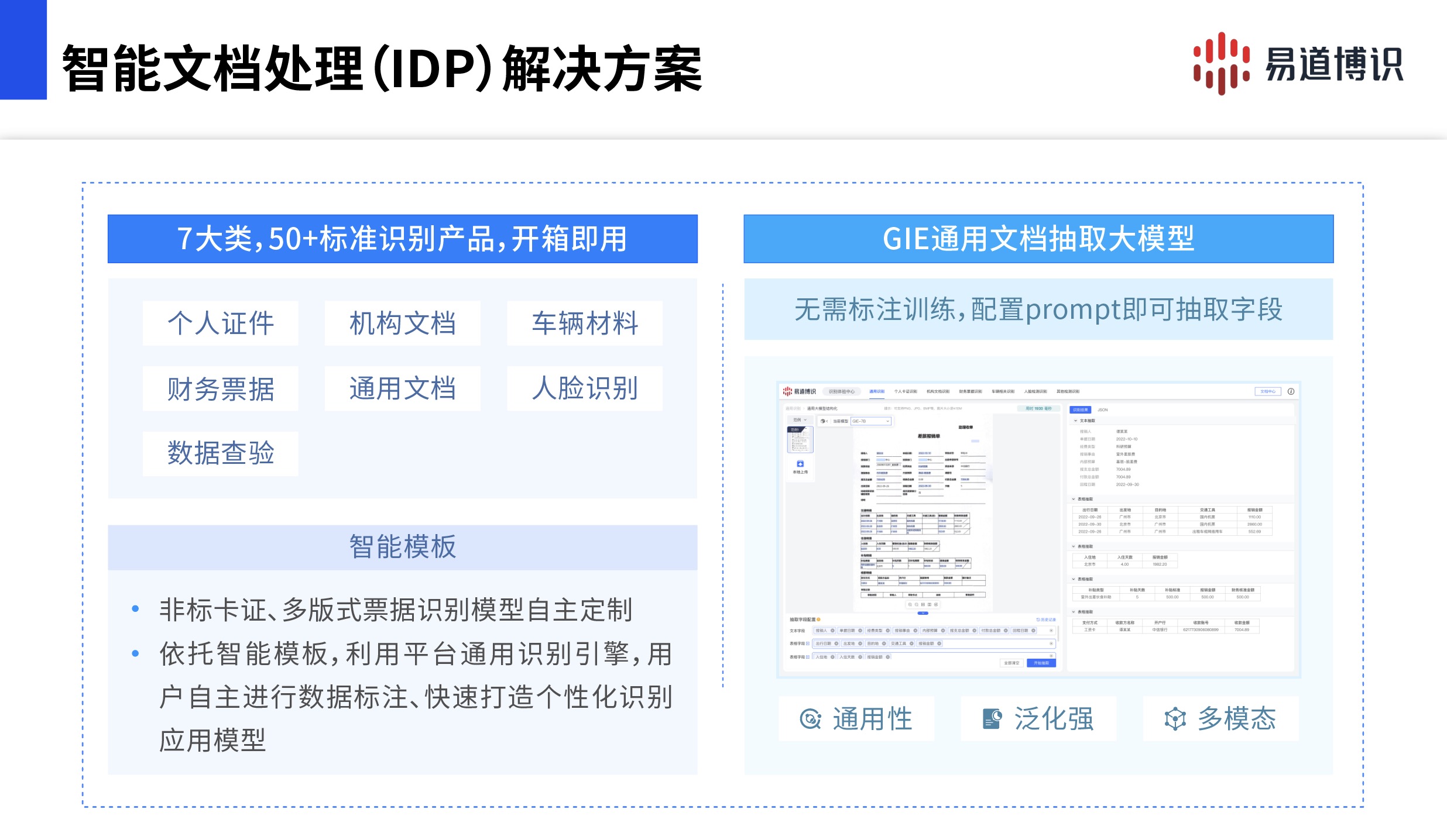在眾多供應商中,易道博識憑借在AI+OCR領域的多年深耕,成為了智能文檔處理領域的專家。