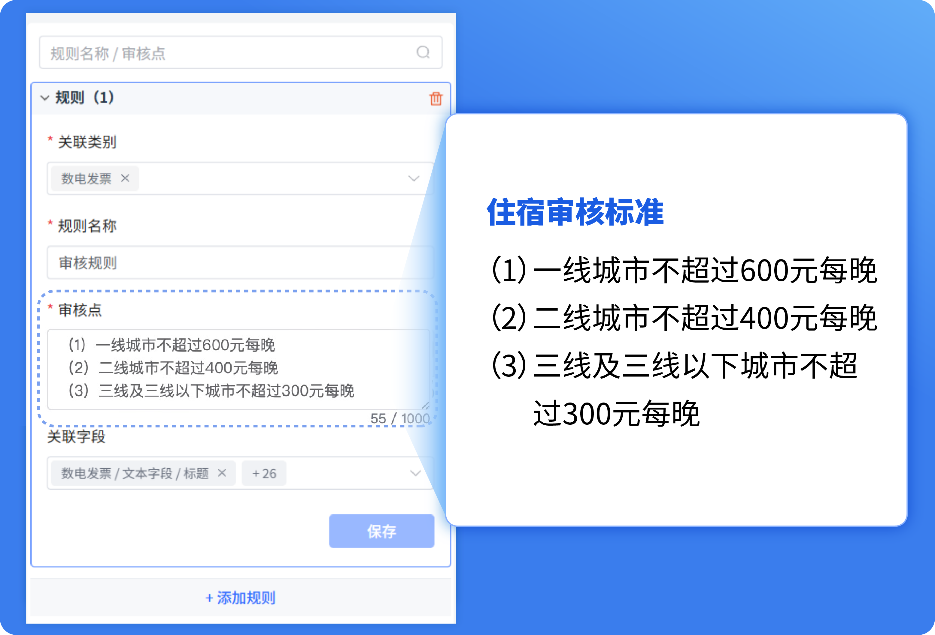 零代碼配置規則: 審核規則零代碼可視化配置,業務人員用自然語言描述即可創建規則,復雜規則輕松審核。