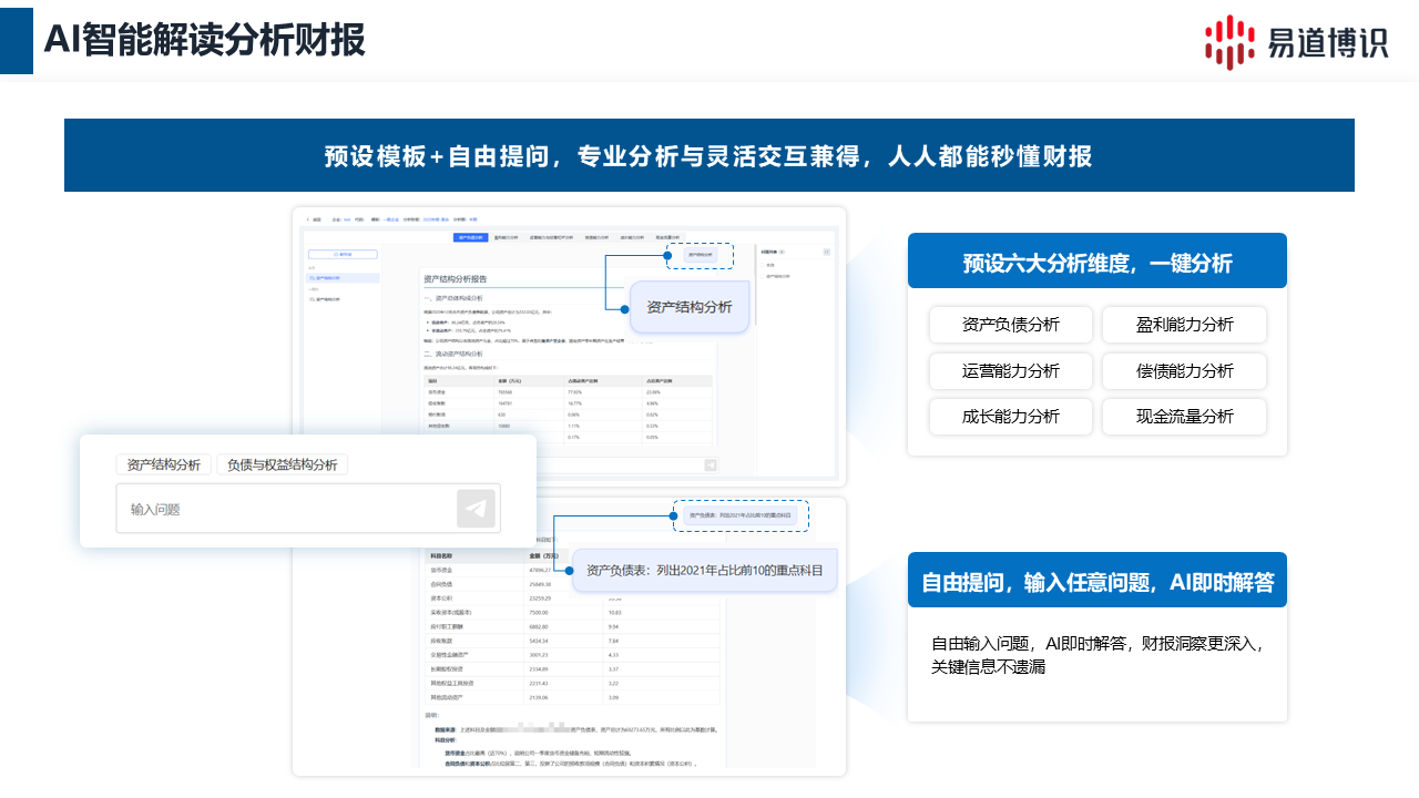 同時(shí),也支持自由提問(wèn)。無(wú)論是想看某年度重點(diǎn)科目,還是想了解企業(yè)資產(chǎn)結(jié)構(gòu)變化,用戶(hù)都可以直接輸入問(wèn)題,由AI即時(shí)生成解答。