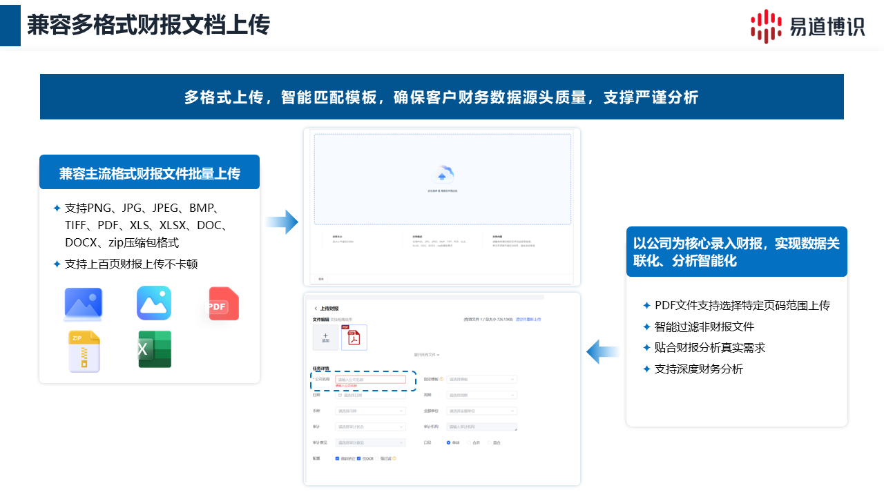 回答:易道博識(shí)系統(tǒng)內(nèi)置跨行業(yè)模板,無(wú)論原格式多復(fù)雜,上傳瞬間即可通過(guò)自適應(yīng)技術(shù)自動(dòng)建立規(guī)范的財(cái)務(wù)科目映射。